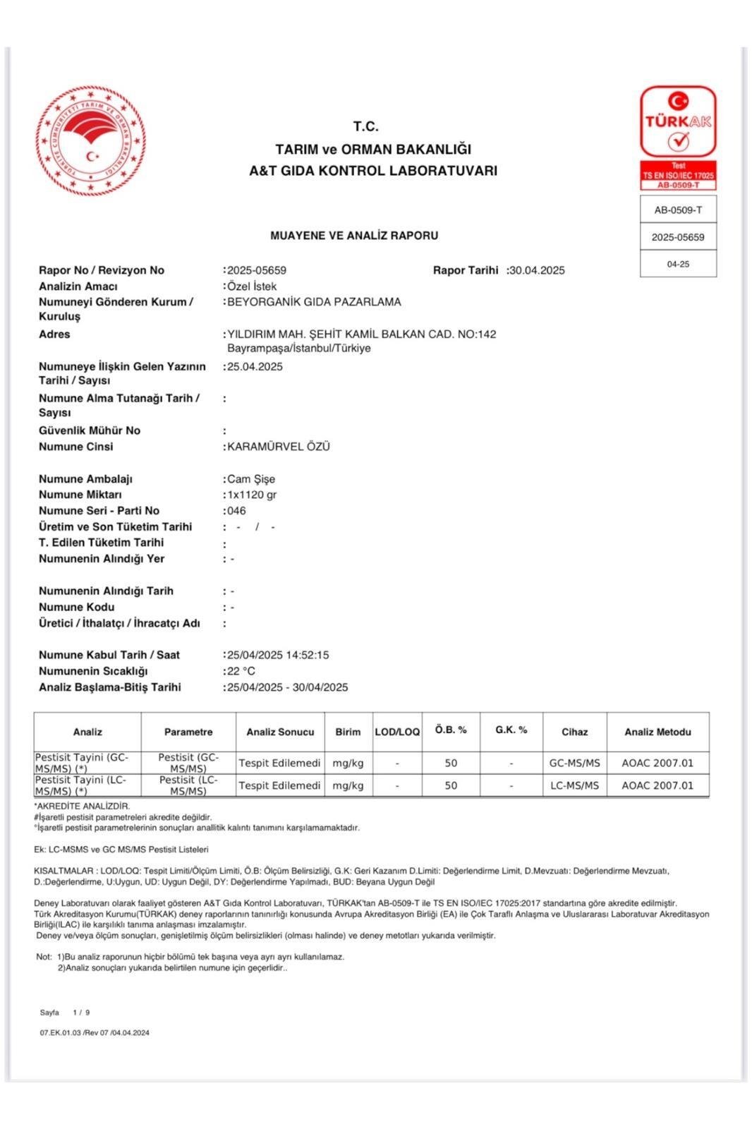 Beygurme Karamürverli Karadut Özü 250 ml (Pestisit Analizli)