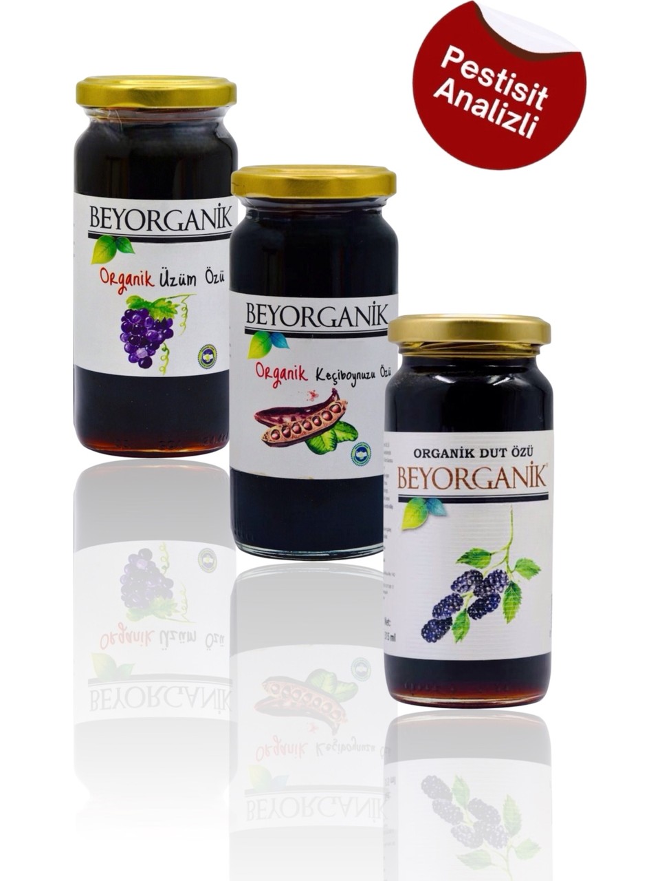 Beyorganik Organik Keçiboynuzu Özü Organik Dut Özü Organik Üzüm Özü 3'lü set (PESTİSİT VE AĞIR METAL ANALİZLİ)
