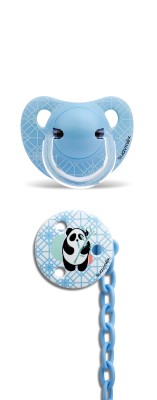 Suavinex Silikon Ortodontik Emzik ( 6 - 18 ay) ve Emzik Zinciri Set Panda (Mavi)